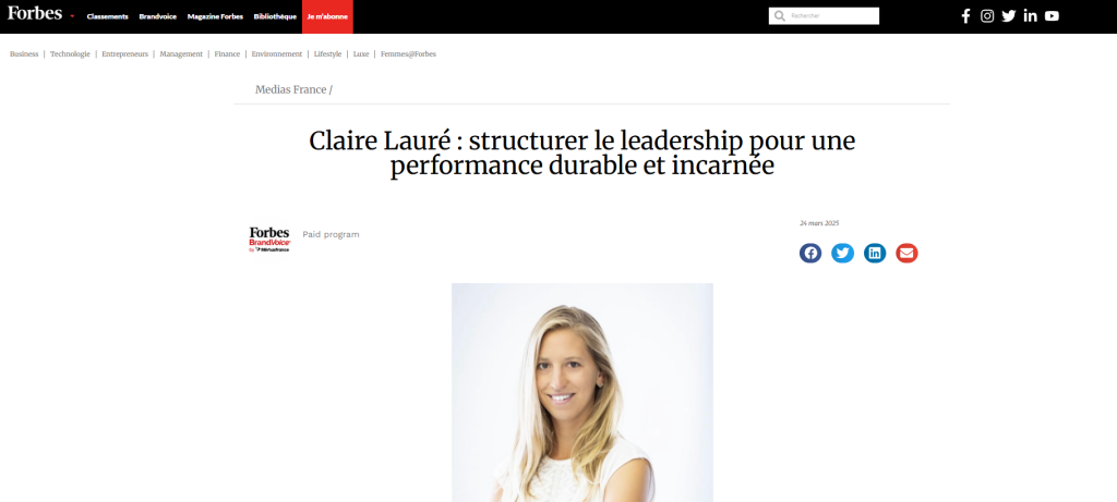 Dans un entretien de Forbes, Claire Lauré revient sur les enjeux de leadership et de transformation des entreprises, dans un contexte économique et humain en mutation.